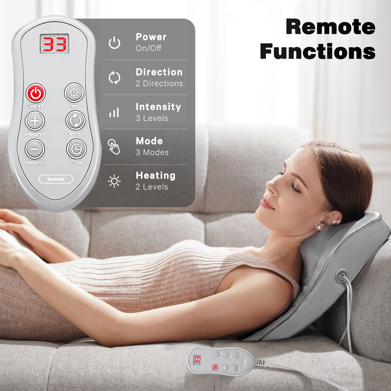 【Versatility & Gift Choice】 Boriwat massager with heat can target the neck, back, lumbar, arms, abdomen, and legs, offering a wide range of application options for different body regions. This Shiatsu massager also makes a great gift for mom, dad and other friends, helping them alleviate pain and embrace relaxation.